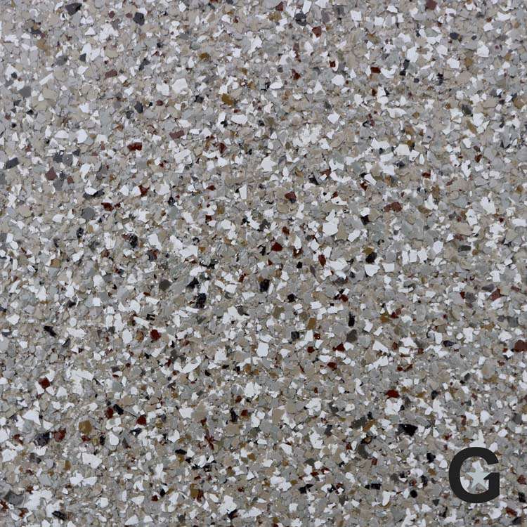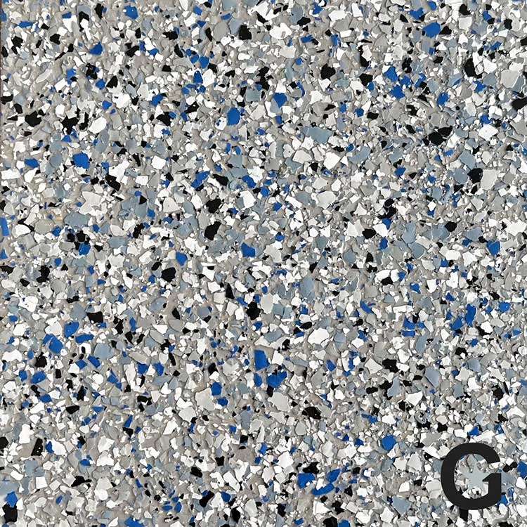 Galaxy offers an incredible line of options of colors and styles for your new concrete floor coating. Your Galaxy Sales Representative will be happy to help you choose the right one for you. With Galaxy, you not only get the benefits of polyaspartic floors over epoxy, floor flake options are plentiful!