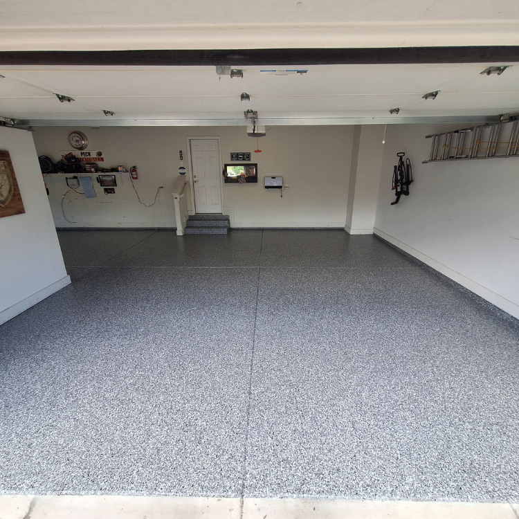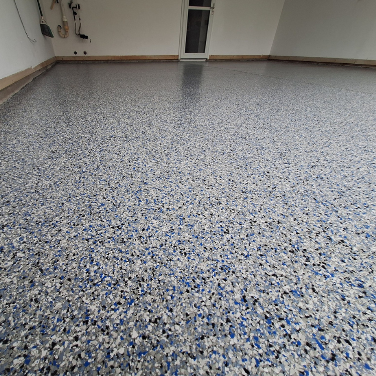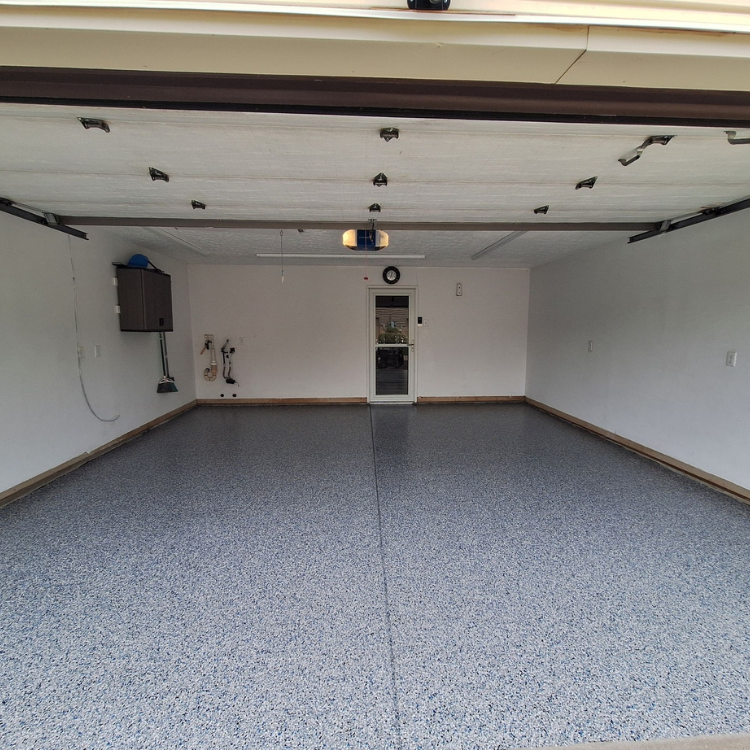 • Style: The vinyl chips can be custom-blended to nearly any color, allowing your new garage floor to match the look you want.